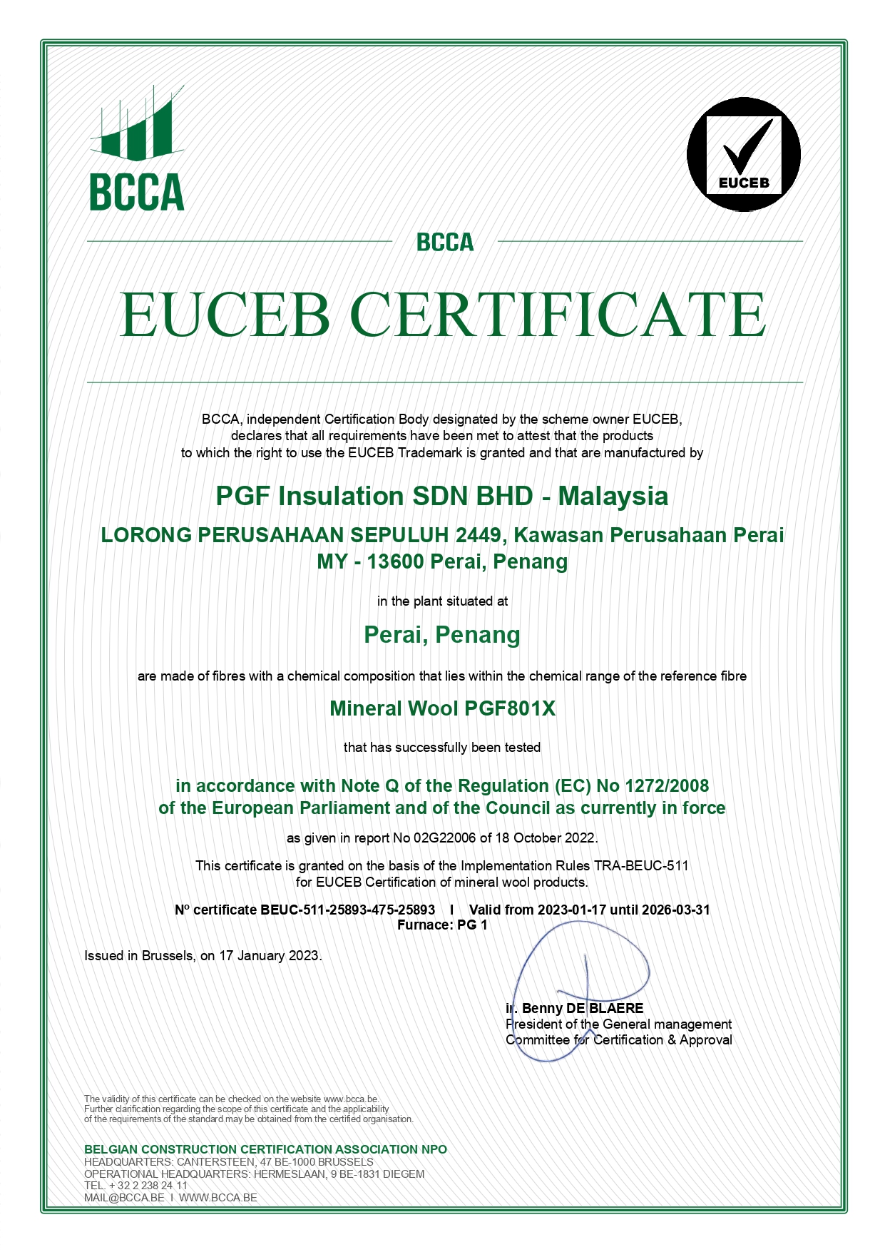Singapore Green Building Product Certificate - Browni V2